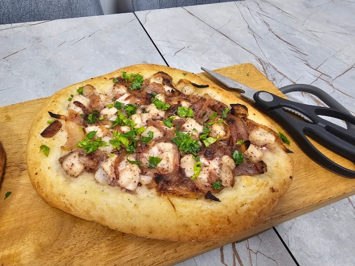 – מניחים על כל עיגול בצק רבע מהתערובת של הדג.